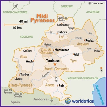 北にはMassif Central中央山塊、南にはLes Pyrénéesピレネー山脈、そしてその中間には平野部といったヴァラエティに富む地形をもった地域圏です。古くはComté de Toulouseトゥールーズ伯の領土の主要な部分を担っていました。また、その伯領は広く現在のLanguedoc-Roussillonラングドック・ルシヨン地域圏にも及んでいました。ちなみにこの場所に限らずほぼla Loireロワール川以南の地域全体で話されていた言葉であるオック語について、フランス語ではその地域をOccitaniaオクシタニアと言い、その言語をL’Occitanロクシタン(化粧品メーカーの名称もここに由来しています)と言います。このような地形の多様性はそのまま文化の多様性に表される事は他の地域圏を見ても明白です。また、この地域、またLanguedocも合わせた広義でのトゥールーズ伯領は12世紀頃隆盛したキリスト教異端カタリ派との関係を抜きには語れません。この宗派はAlbiアルビに多くいたことからアルビ派(アルビジョワ)とも言われます(実際はToulouseが本拠地と言っても良いくらい多かった)。そして、彼らの討伐にあたったアルビジョワ十字軍後、この地域は王領に編成され、それ以後はトゥールーズ伯領に則った区分けはされてこなく、州編成後は、現在の地域圏の北半分がGuyenneギュイエンヌ州、南半分がGascogneガスコーニュ州の一部に分かれており、それらはともに現在のAquitaineアキテーヌ地域圏に属します。このように近世からはAquitaineの影響が大きく、このことは『地方菓子』についても然りです。