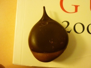 名前の通り、見た目の通り、châtaigne栗の菓子です。châtaigneとmarronの違いについてはPrivasのページを参照して下さい。このようにpâteペースト状のものをchocolatで栗のようにデコレーションした姿で売られている事が多かったです。このように丸ごとではなく、加工品として用いいられていることから、この地域では、この地域圏の『地方菓子』のページの冒頭でも書いたようにchâtaignierが多いのですが、その中でもmarronではなくchâtaigneが多く取れるのではないか、と思われます。