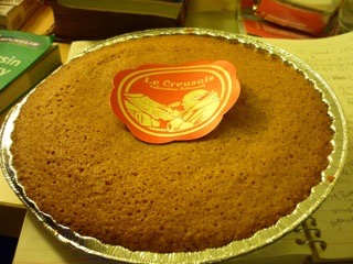 その名の通り、Corrèzeコレーズ県のガレットです。CorrèzeはLimousinの南、ちょうどPérigordとの境界にあります。そのためか、この菓子はChâtaigne栗とnoixクルミの両方を使っています。fonçage敷いたpâte sucréeサブレ生地の上にpâte de marronマロン・ペーストを敷き、その上に生のnoixを並べてその上からgénoiseスポンジケーキのような生地を流して焼き上げます。とても素朴ですが『地方菓子』の特徴をよく表しています。