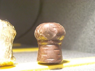 実際は普通のお酒の入ったbonbonですが、形はchampagneシャンパンのコルク、中身はmarc de champagneマール・ドゥ・シャンパーニュ(葡萄酒(この地域圏の場合主にシャンパン)の搾りかすを発酵させた蒸留したお酒、イタリアのgrappaグラッパが有名)が入っており、まさに『地方菓子』です。