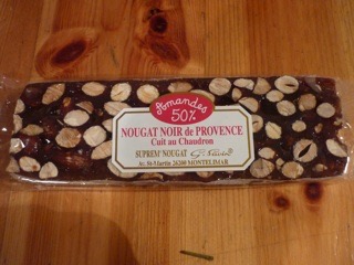 PACAの少し北のMontélimarモンテリマールがNougat blanc白いヌガーで有名ですが(詳しくはMontélimar)、PACAでその『地方菓子』と分類されるのは黒いヌガーです。前者がblanc d’œuf卵白を使用し、固いながらもネチッとした食感なのに対して、こちらは特産であるmiel蜂蜜とsucre砂糖を煮詰めたもので非常に固いです。両者ともたくさんのnoix(一般的には「くるみ」の意ですが広義にはナッツ類全般をさします)が入ります。固まりきる前に切りますが、ひと苦労です。