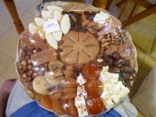 PACAでNoëlクリスマスの時に伝統的に食べられるものです。最近では「なんでもあり、家によって違う」のような風潮みたいですが、基本的に入るものは定まっています。多くは上でも触れたようなPACAのspécialitéである1:「Calisson」2:「Nougat Noir」3:「Nougat Blanc」4:「Pompe à l’Huile」5・6:「Fruits Confit(多くはÉcorces d’Orange confitオレンジの皮の砂糖煮とClémentine confit小粒なみかんの様な果物の砂糖煮の二種類)」7・8:「Fruits Secs(多くは特産物であるDatte sècheナツメヤシの実とAbricot secアンズの二種類)」9:「Pâte de Fruit(Coingマルメロのもの)」。そして特に重要なのが、10・11・12・13:「Raisin sec」「Figue sèche」「Amande」「Noisette」です。これらは総称して「4 mendiants」と言われ、四つの托鉢修道会のことです。それぞれ「Raisin sec」はDominicainsドミニコ修道会、「Figue sèche」はFranciscainsフランシスコ修道会、「Amande」はCarmesカルメル修道会、「Noisette」はAugustins聖アウグスチノ修道会を意味し、その僧衣の色を表しています。この他には「Melon Confit」や「Confiture」、「Navette」などを入れる場合があります。また、合計で13種を超える場合も多くあり、その理由は誰も分かりませんでした。13種類である理由はキリストと12人の弟子達の13人による「最後の晩餐」を意味しているという話です。